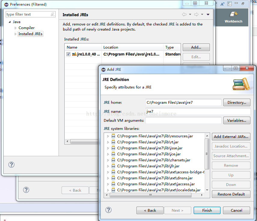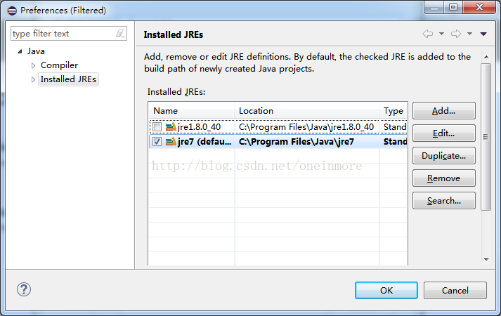 eclipse使用的是最新的稳定版Luna sr2;JDK安装了jdk8和jdk7;系统是windows 7。