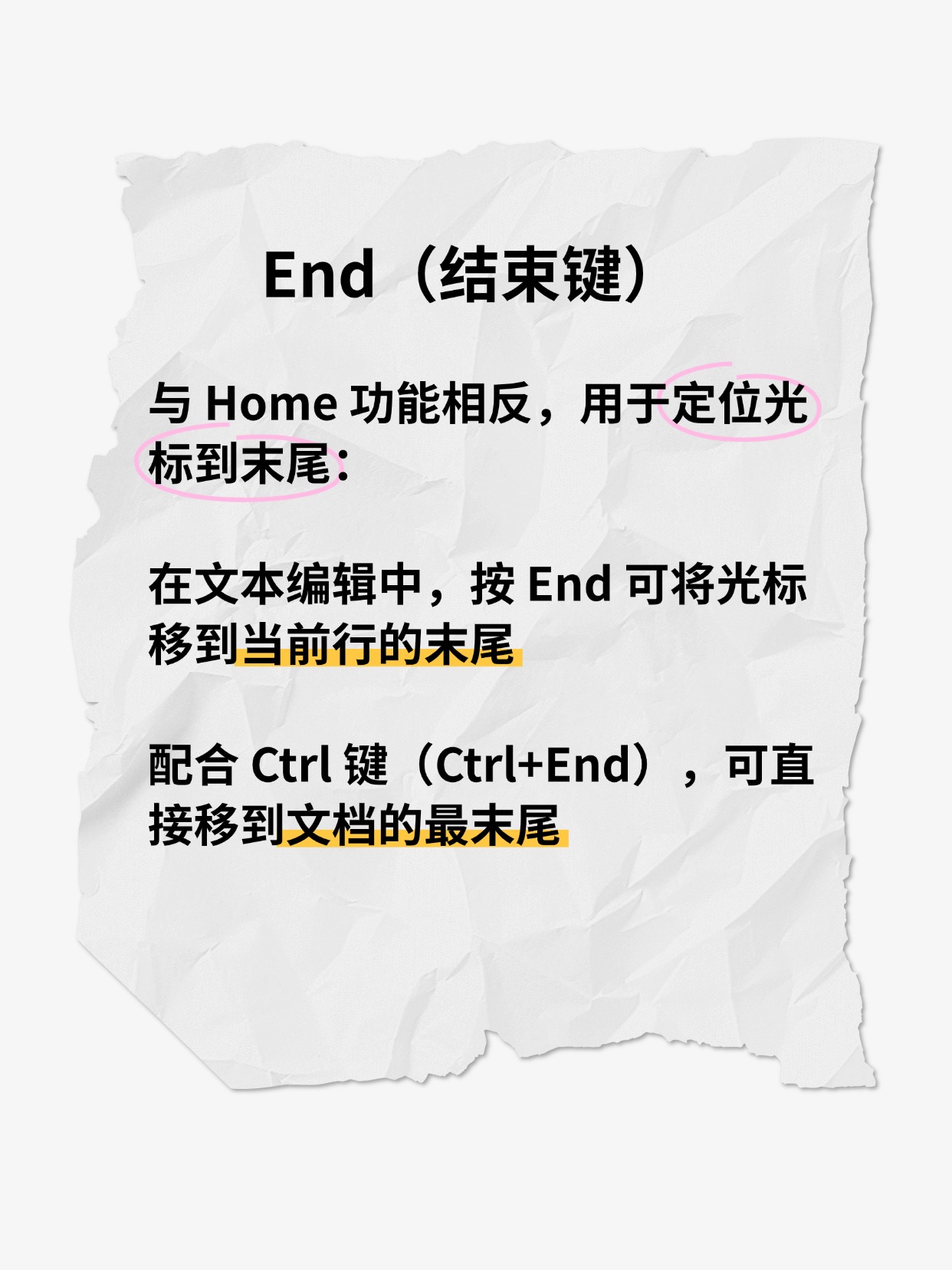 配合 Ctrl 键(Ctrl+End),可直接移到文档的最末尾