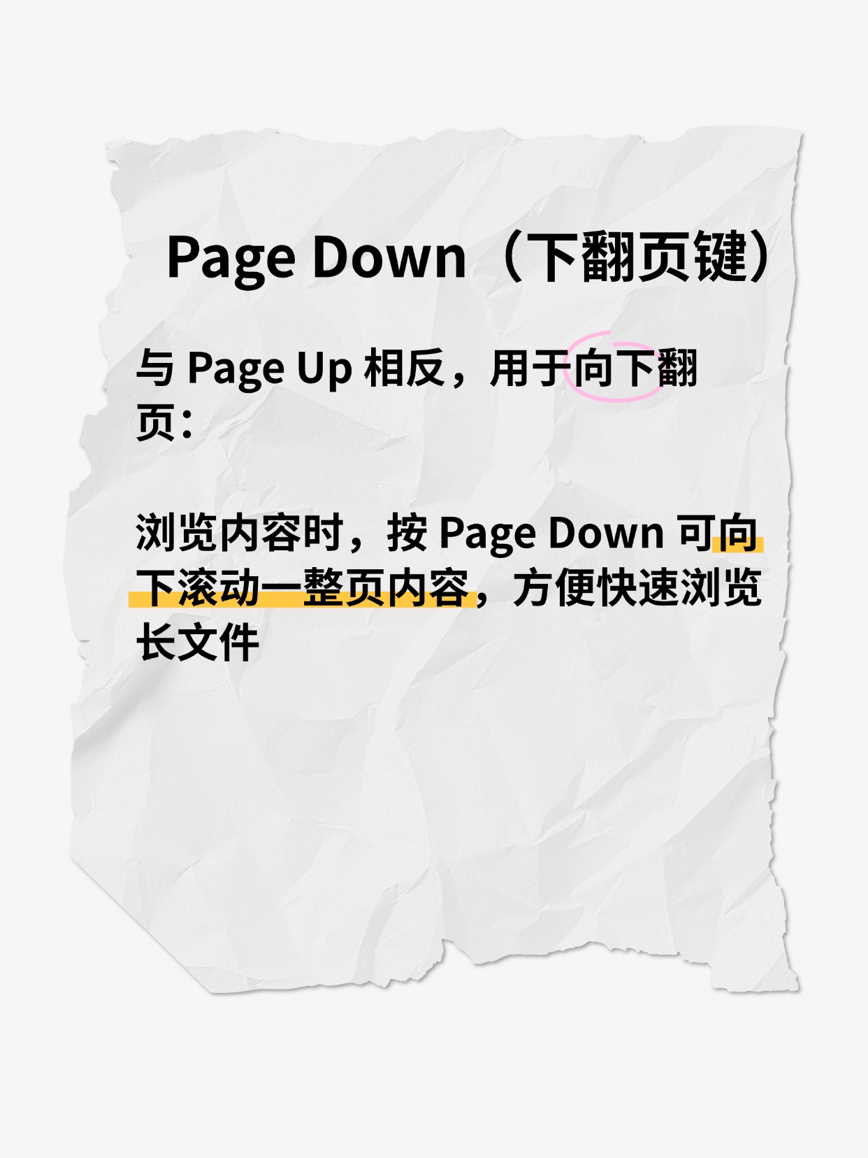 浏览内容时,按 Page Down 可向下滚动一整页内容,方便快速浏览长文件
