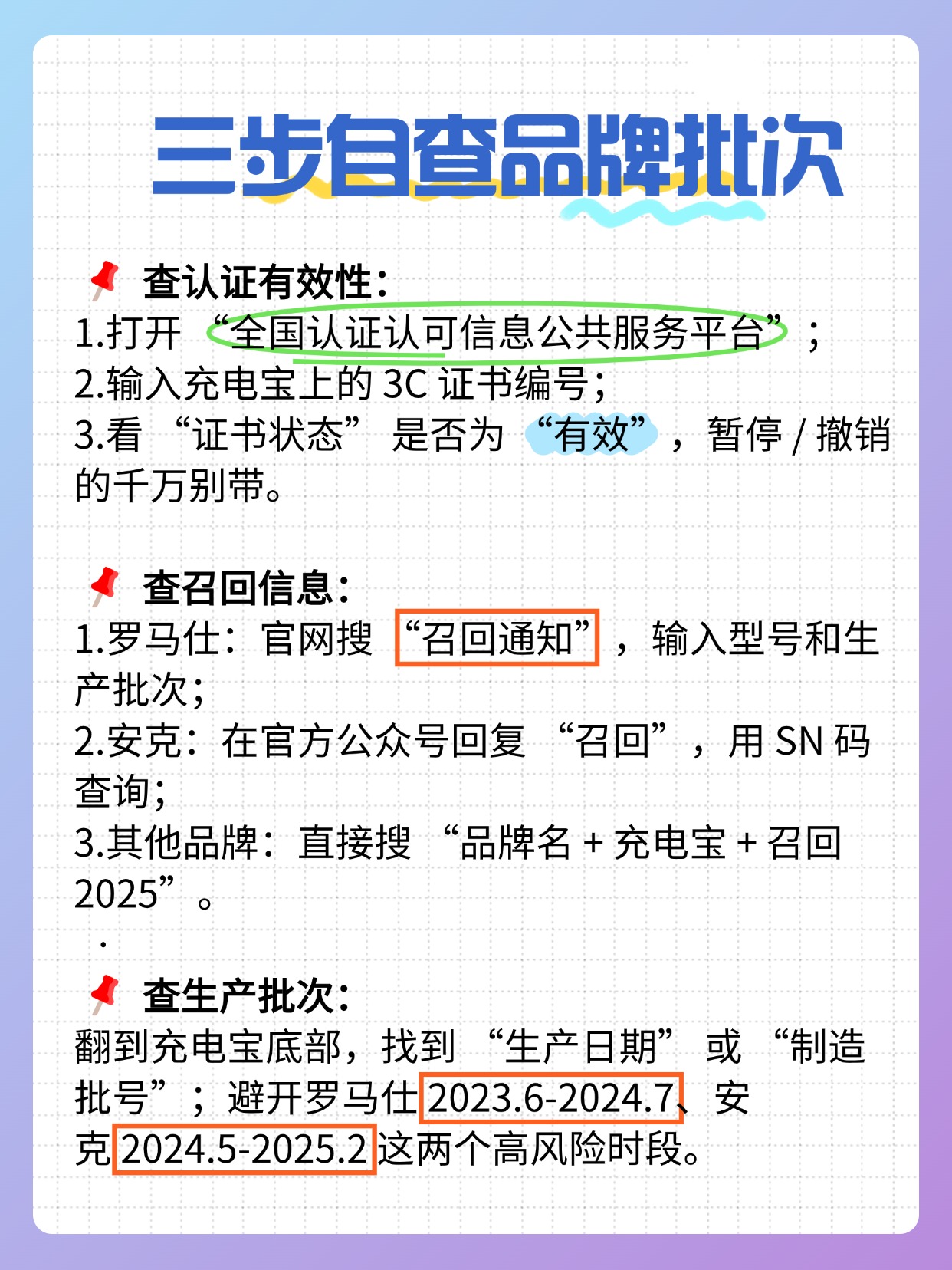 其他品牌:直接搜 “品牌名 + 充电宝 + 召回 2025”。
