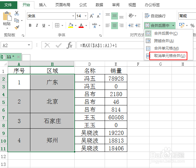 如何在excel中取消合并完单元格后自动把内容填充给其每个取消后的单元格?方法很简单,快来学习一下吧。