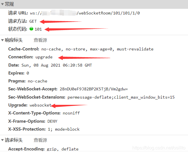- Sec-WebSocket-Key:UdTUf90CC561cQXn4n5XRg== :与Response Header中的响应首部Sec-WebSocket-Accept: u1IRUiDR0daix+vYHGJNSg==是配套的,提供基本的防护,比如恶意的连接或者无意的连接。