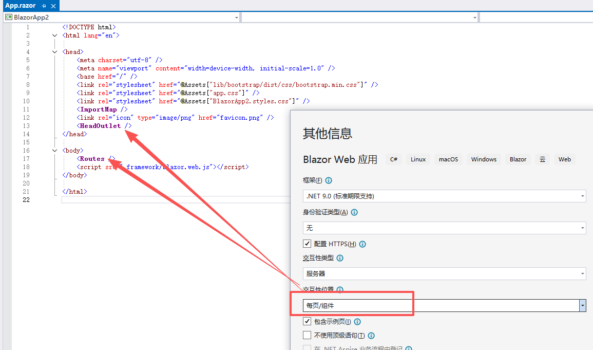 1、新建一个Blazor server项目。在VS2022中,建一个Blazor项目,注意VS2022中提供了几种模板,老的模板会有Server和WebAssembly两个模板,后面到net8、9要使用新的模板,就是“Blazor web 应用”: