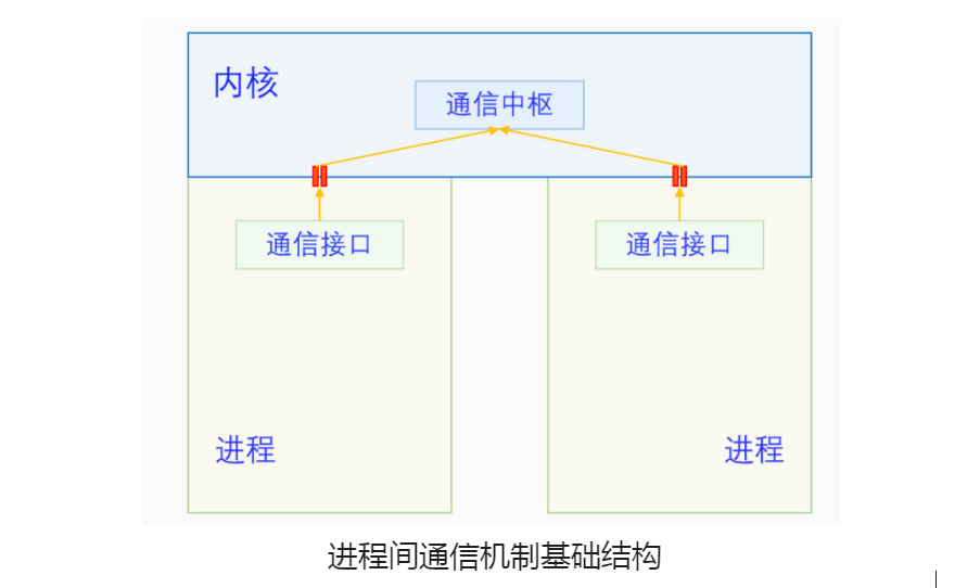 进程间通信机制由存在于内核空间的通信中枢和存在于用户空间的通信接口组成,两者关系紧密。通信中枢就如同邮局或基站,为通信提供核心机制;通信接口则像信纸或手机,为用户提供使用通信机制的方法。