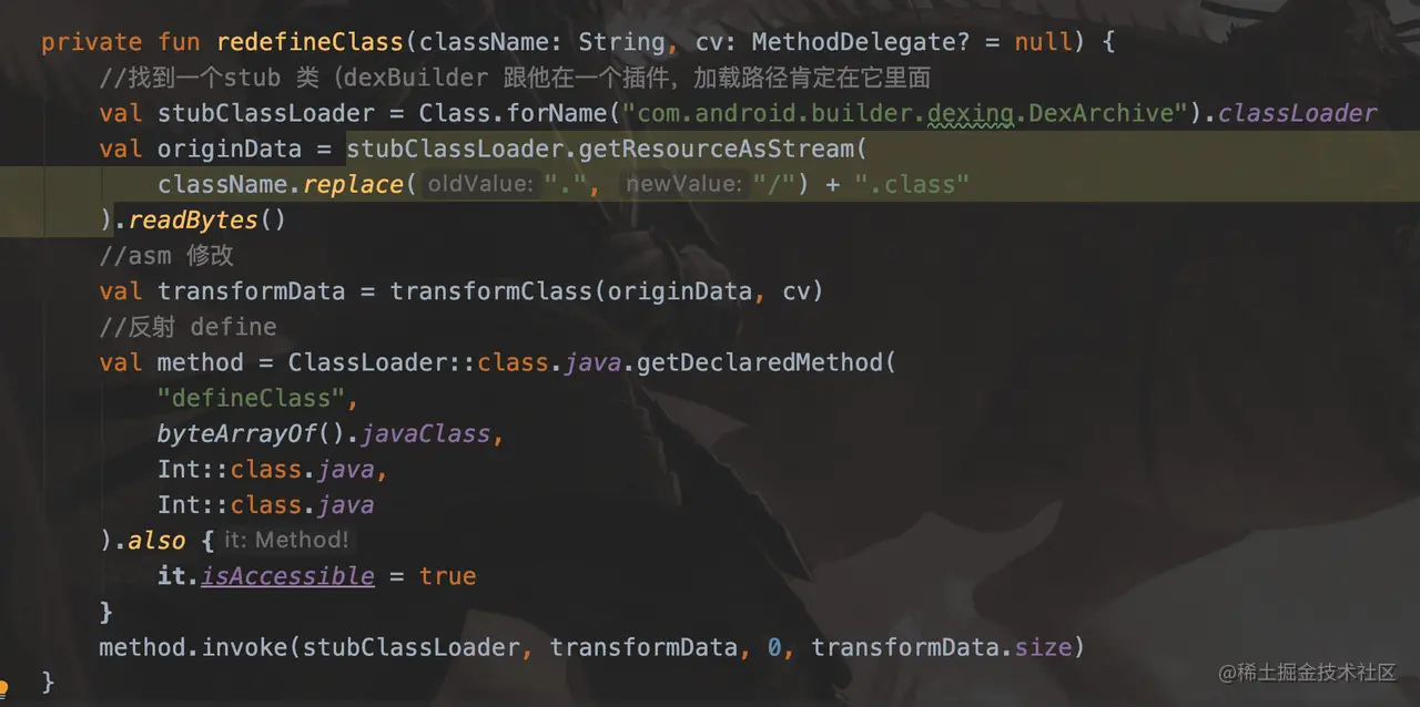 在优化前为了得到真正的重新执行 dex 编译的数值,做到最佳优化,设计了一套 hook dex 编译流程的方法(该方法理论上可以 hook Android gradle plugin 任意类:大致就是 hook classLoader ,提前用 asm 修改 D8DexArchiveBuilder 中的 convert 方法