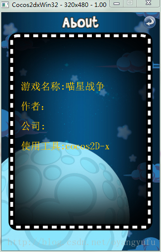 点击About 菜单按键切换GameAboutScene场景进入关于页面
