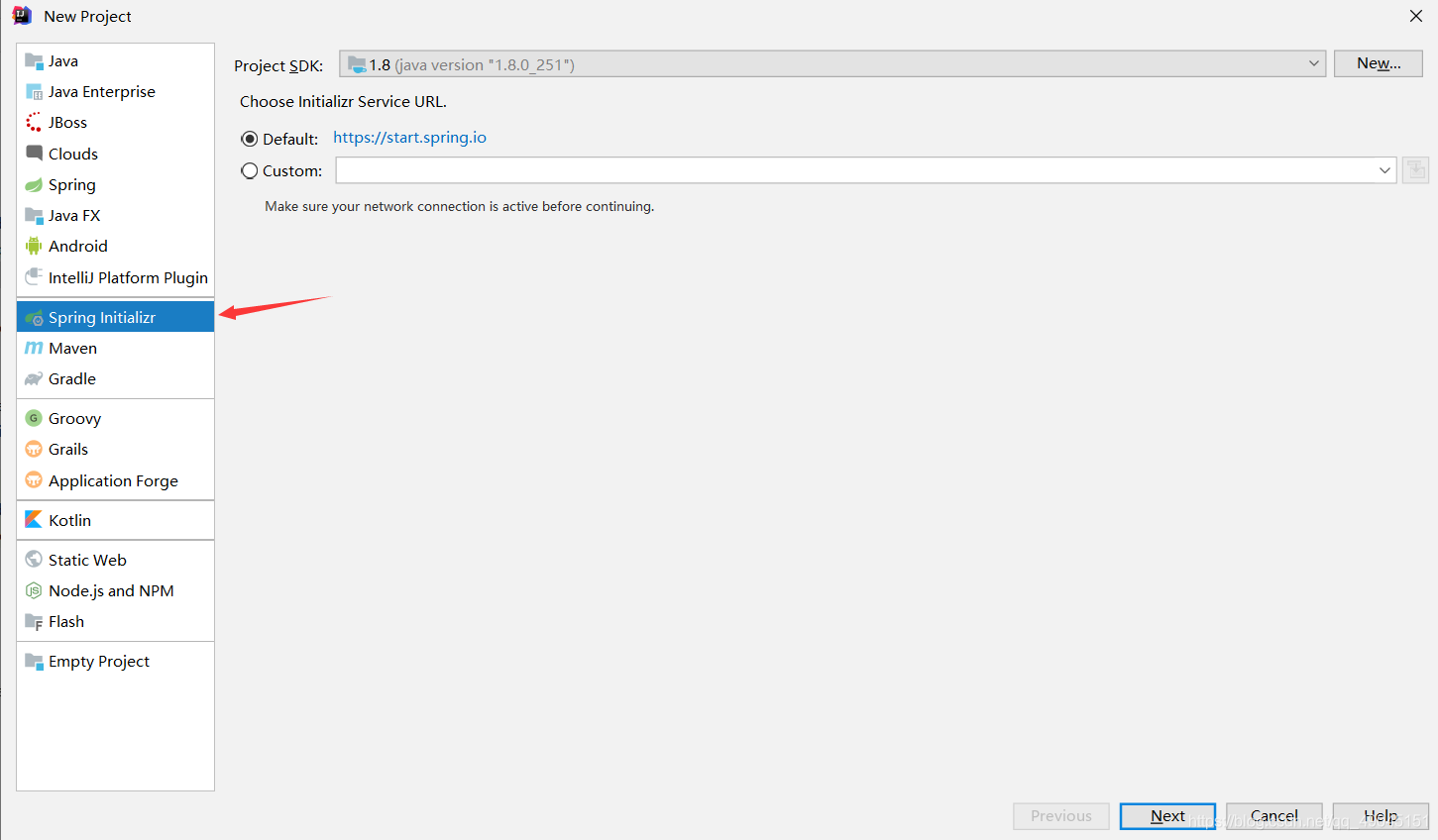 3.选择spring initializr—>Next
