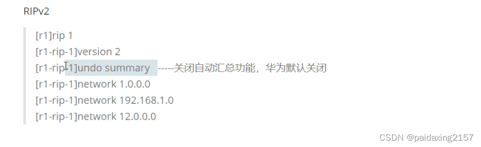 RIPv2支持自动汇总功能(汇总时,直接汇总到主类),RIPv1不支持