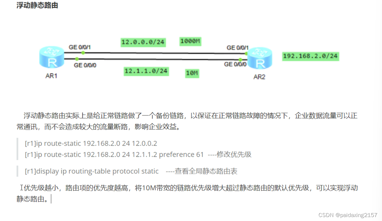 [r1]ip route-static 192.168.1.0 24 12.0.0.2 [r1]ip route-static 192.168.1.0 24 12.1.1.2