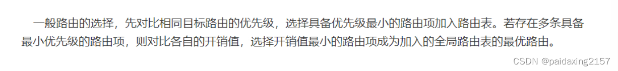 当优先级相同时,多条路由信息中开销值最小的路由优先度越高