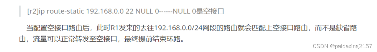 空接口路由是解决环路的方式————黑洞路由器上存在缺省路由。