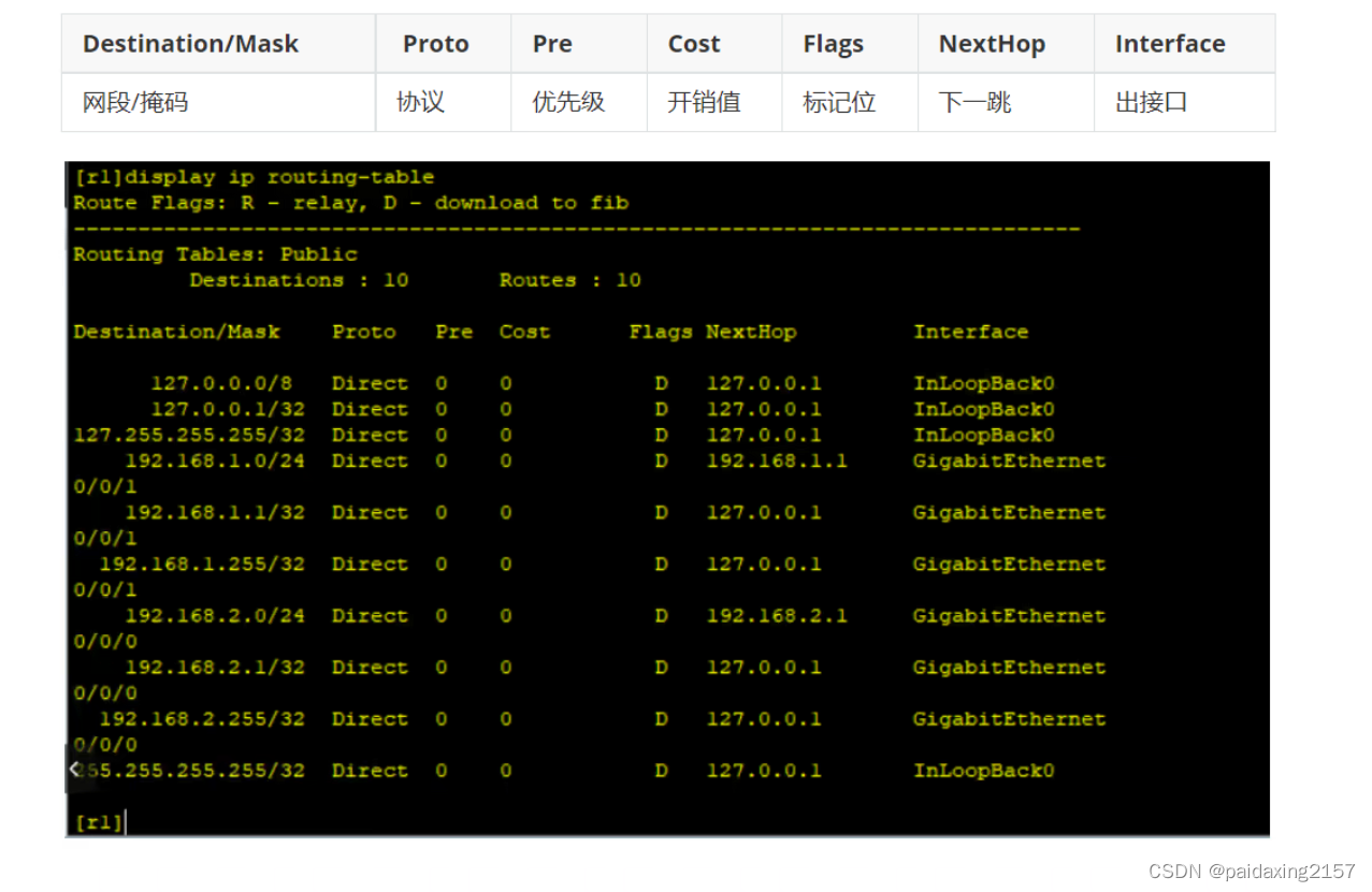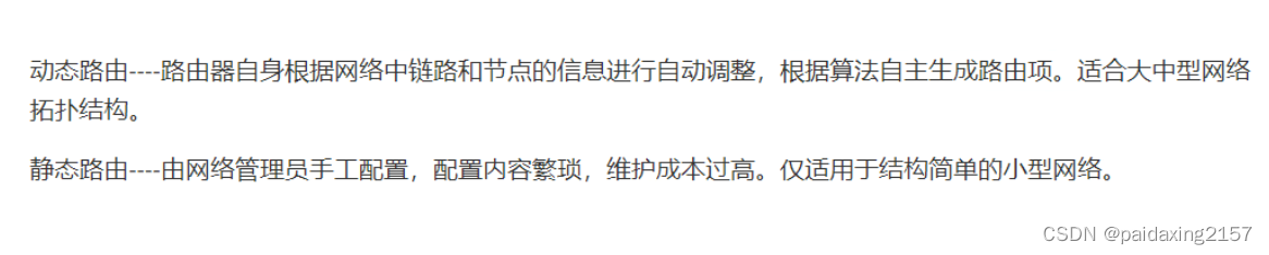 路由信息的来源:设备自动发现(直连路由),手动配置(静态路由),通过动态协议生成(动态路由)。