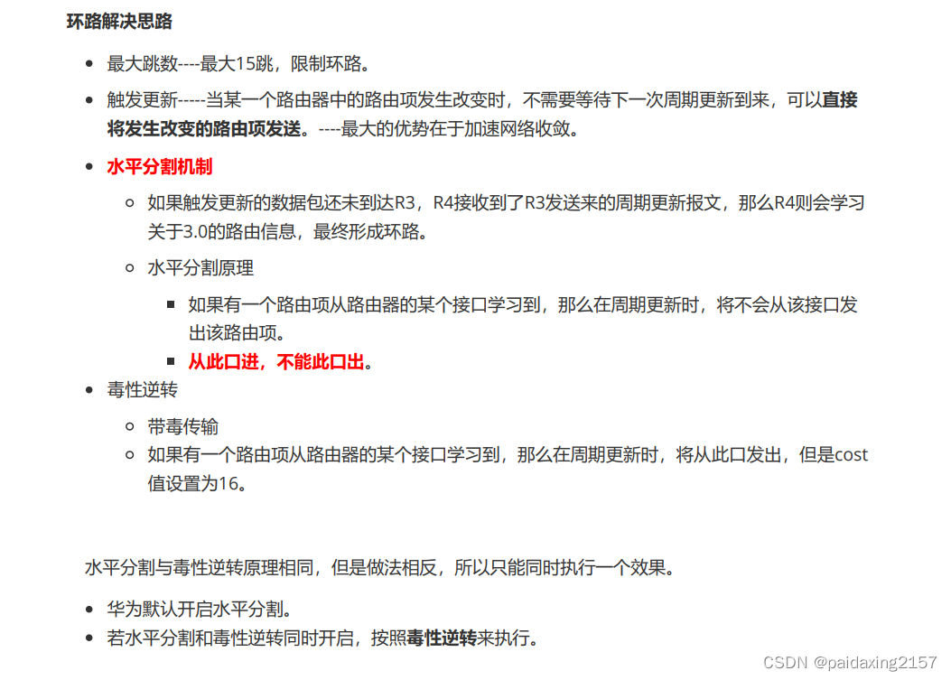 RIP使用跳数作为开销值COST,最大跳数为15,16认为是路由无效。