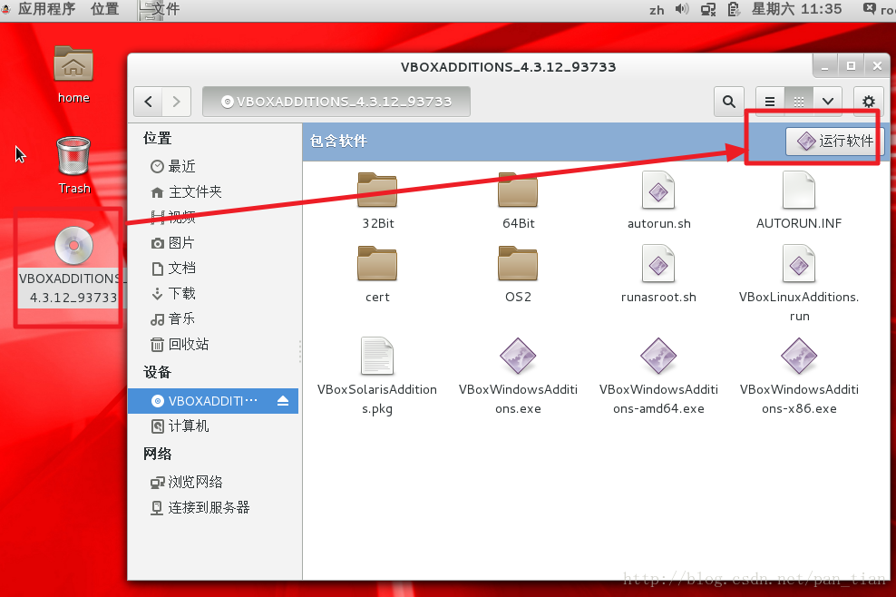 3.虚拟机中的光驱,运行VBoxWindowsAdditions.exe,安装完成后,重启虚拟机中的系统,就能看到主机中的共享目录了。