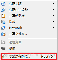 有的人反应只要设置双向粘贴就可以,但是我的不行,我还需要再给虚拟机安装一下增强功能。需要启动虚拟机,安装菜单项“设备”中的最后一项。