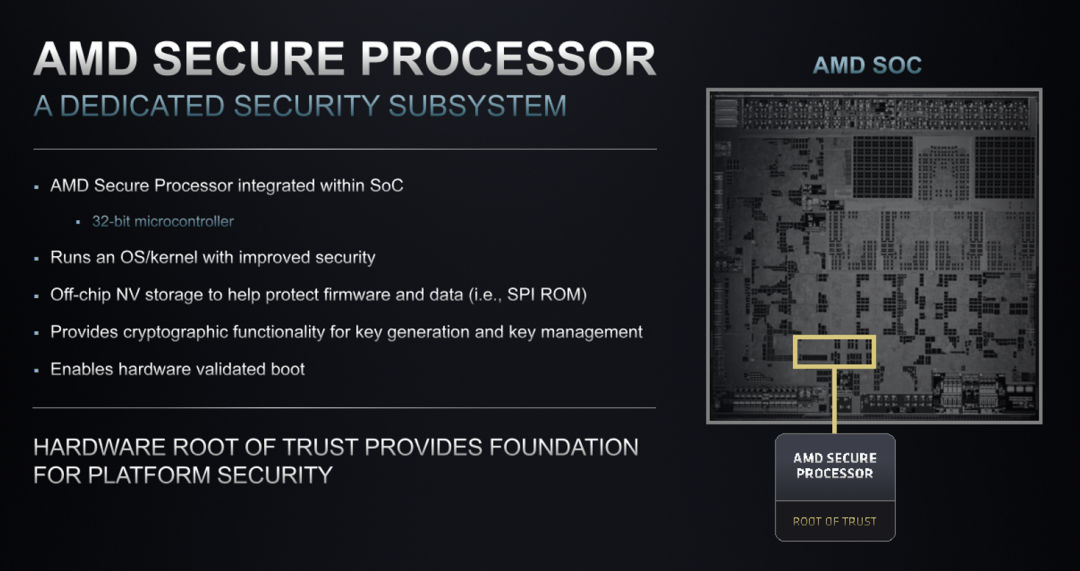 Noah表示,安全同样是第三代EPYC设计的核心理念之一,广受业界好评的IO Die得到了沿用。在原有的各种安全机制之外,AMD还为秘钥的生成、管理,提供了加密的功能。由于硬件验证的启动,因此能够实现以硬件信任为基础的、更高级别的安全。