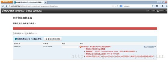 (1) 选安装的时候没有输入自己的本地yum路径:http://192.168.1.101/repo,clouder manager在默认不输入时选用官方网的安装包路径,由于本地yum外网不通,所以报此错