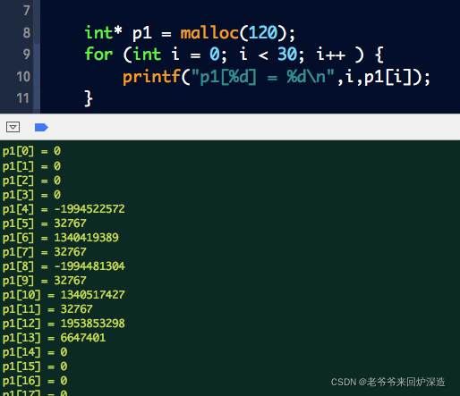 6). 在堆区申请的字节,里面是有值的.值是垃圾值.不会自动清零.