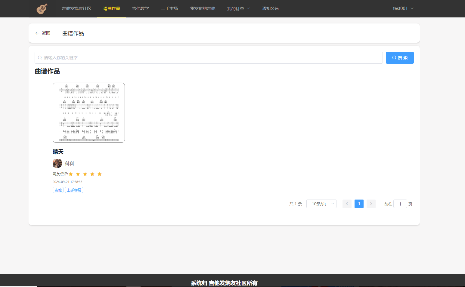 展示所有用户上传的曲谱作品。其他用户可以对这些曲谱作品进行点评和评论,分享自己的观点和点评。同时,还可以通过关键字搜索功能来查找特定的曲谱作品。