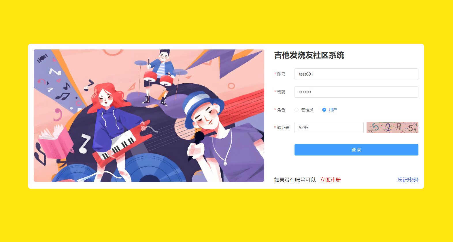 1.1用户注册:只允许注册用户,管理员账户为统一发放,