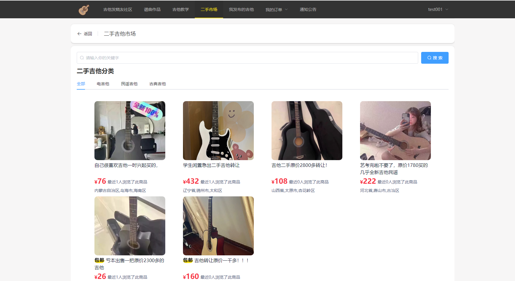 3.1 二手乐器交易市场功能的实现