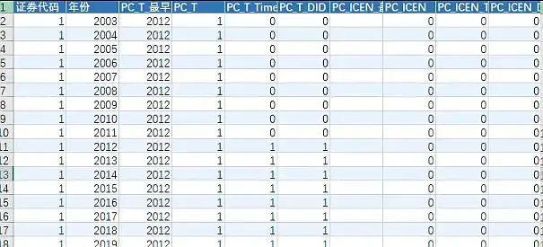 本数据以上市公司高管个人资料数据为基础,选取2003年至2024年间上市公司核心高管(董事长、总经理)的个人简历信息,依据其政府任职经历构建政企纽带变量。参考夏立军等(2011)的判定方法,若在当年末,高管任职于(或曾任)政府机关、党政部门或直属事业单位,则认为该企业具有政企纽带(PC_T=1);若在当年末,高管任职于(或曾任)中央部委、国务院直属事业单位、中央党政机关等中央体系内机构,则定义为具有中央层面的政企纽带(PC_ICEN=1)。此外,分别记录企业首次出现政企纽带与中央政企纽带的年份,构造变量PC_T_最早年份与PC_ICEN_最早年份,并据此生成相应的时间虚拟变量(PC_T_Time与PC_ICEN_Time)及双重差分变量(PC_T_DID与PC_ICEN_DID)。其中,时间虚拟变量表示企业自高管首次出现政企纽带当年起取值为 1,否则取 0;双重差分变量则用于标识企业在第 t 年是否已进入政企纽带阶段,以便分析政企关系建立前后的变化。