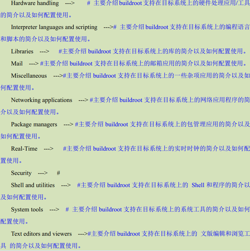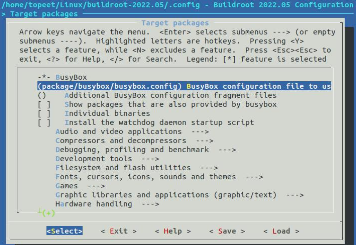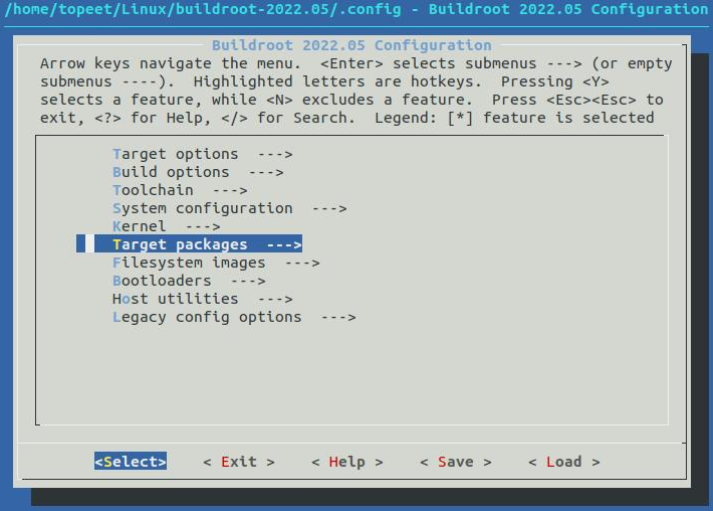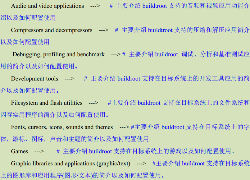 Target packages 选项主要介绍在目标开发板上使用根文件系统所需要的软件包的添加方法, 以及配置方法, 大家可以根据需求来自行添加。 如下图所示