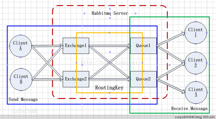 RabbitMQ是流行的开源消息队列系统,用erlang语言开发。RabbitMQ是AMQP(高级消息队列协议)的标准实现。如果不熟悉AMQP,直接看RabbitMQ的文档会比较困难。不过它也只有几个关键概念,这里简单介绍。RabbitMQ的结构图如下: