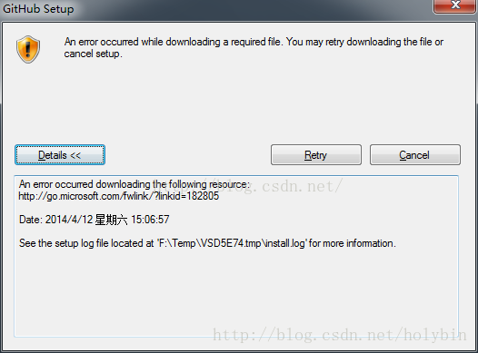 以前官网下载的github是离线安装包(来自msysgit),结果现在是在线安装包::一个几百KB的GitHubSetup.exe文件。安装时会下载文件,但是经常不成功: