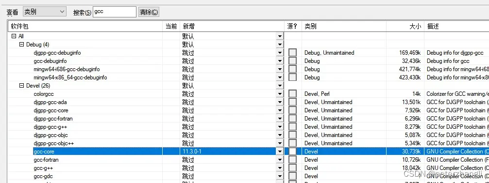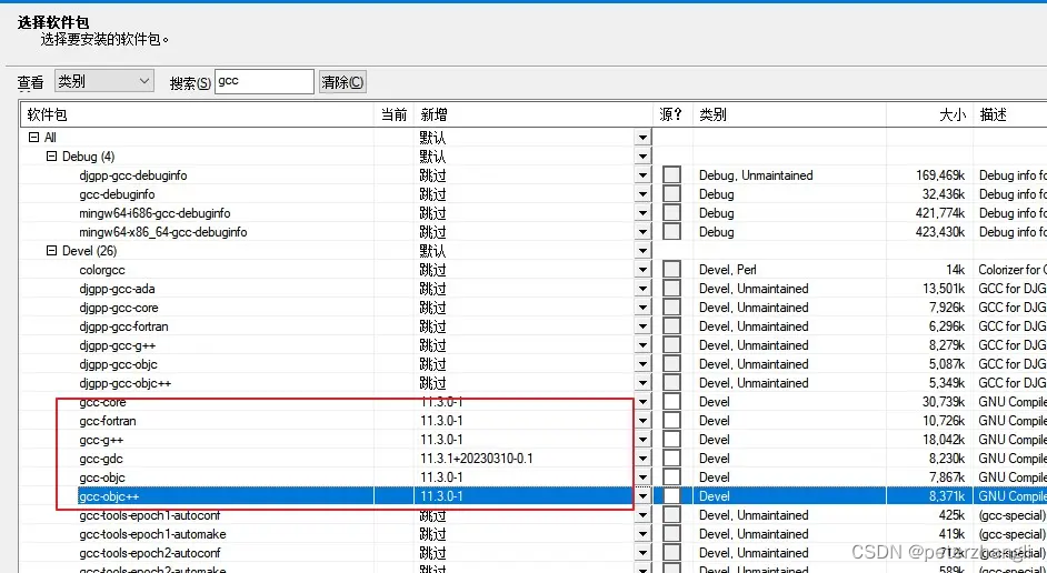 选择 gcc-fortan、gcc-g++、gcc-gdc、gcc-objc、gcc-objc++