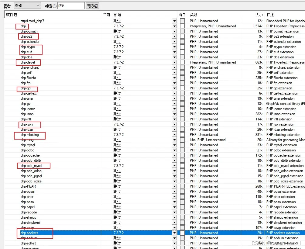选择 php、php-devel 等