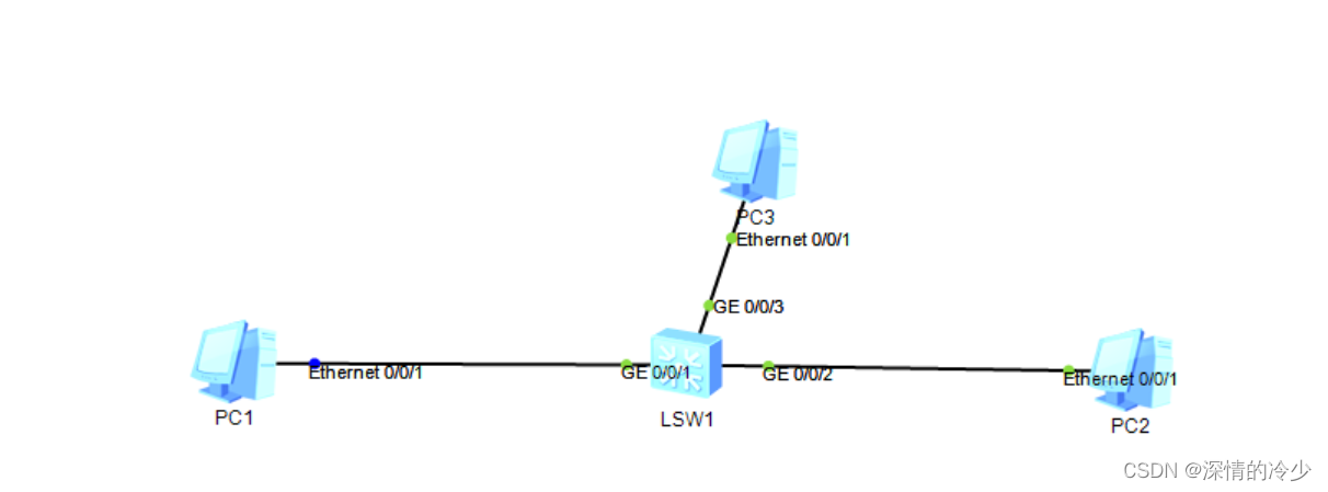 ③pc1就会发送ARP广播,同一网段下用户都会收到广播,但是只有pc2回复