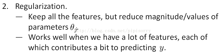 当我们有很多features,但是只有很少的训练数据时,就会有overfitting问题。而由于features太多又不好绘制,不好确定保留哪些features。
