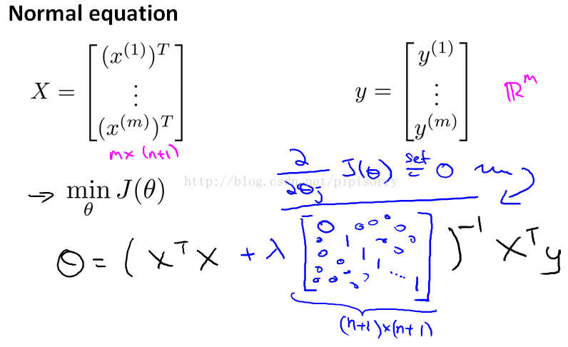 推导: using the new definition of J of θ, with the regularization objective.Then this new formula for θ is the one that will give you the global minimum of J of θ.