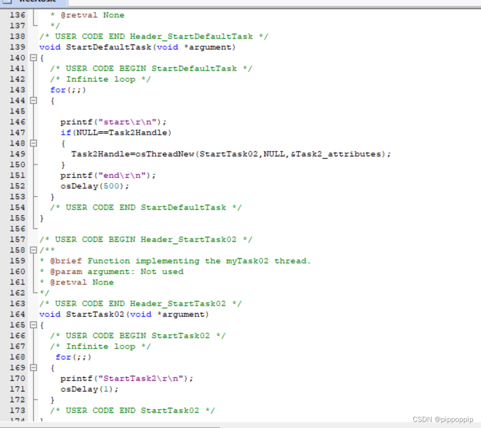 FreeRTOS day1 在生成的代码中找到并调用HAL_GPIO_Init()函数,将其放在main函数或初始化函数中,以初始化所配置的GPIO引脚。在Pinout配置选项卡中,可以看到STM32微控制器上的所有GPIO引脚,可以自由拖动和更改引脚功能。选择需要配置的GPIO引脚,然后在右侧的"Mode"下拉菜单中选择输入/输出/复用等功能。根据需要选择引脚的输出类型(推挽/开漏)、速度(低速/中等速度/高速)、上拉/下拉等设置。编译代码注意:选择正确的芯片型号和编译器设置,确保所有需要的头文件都正确包含,在左上角输入芯片型号;