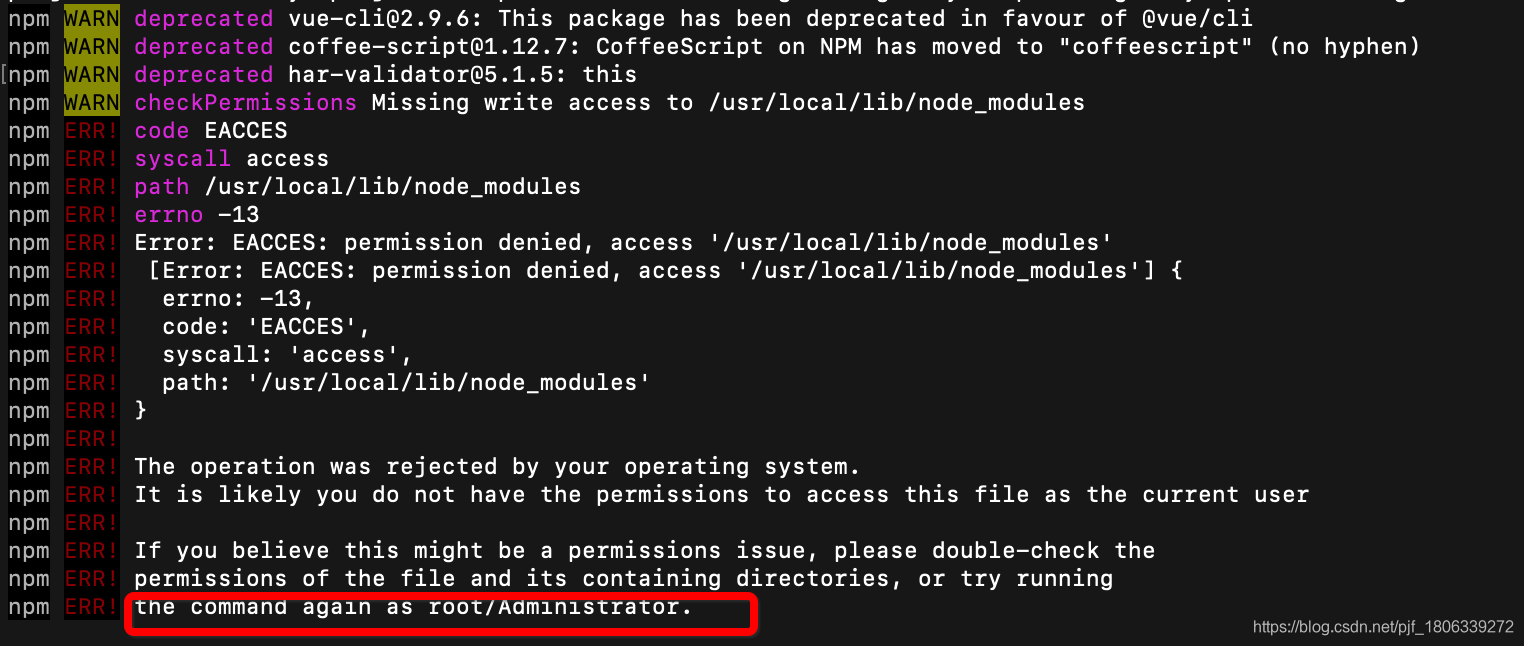 1、mac 命令行 安装 提示需要管理员权限,报错提示如下: