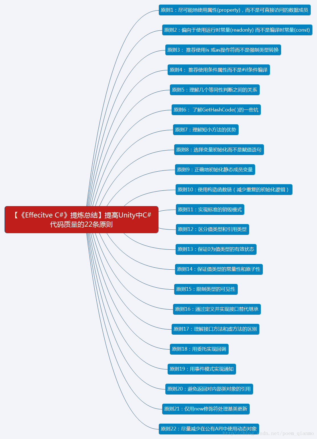 以下是本文内容,提高Unity中C#代码质量的22条准则的总结式思维导图:
