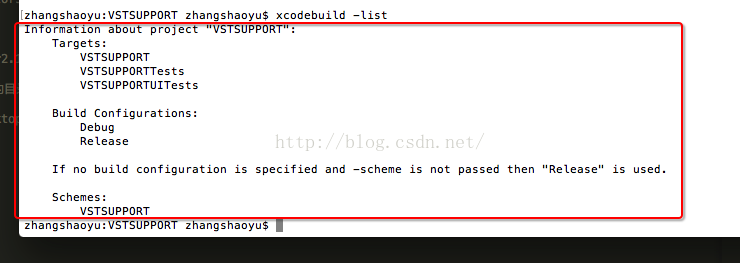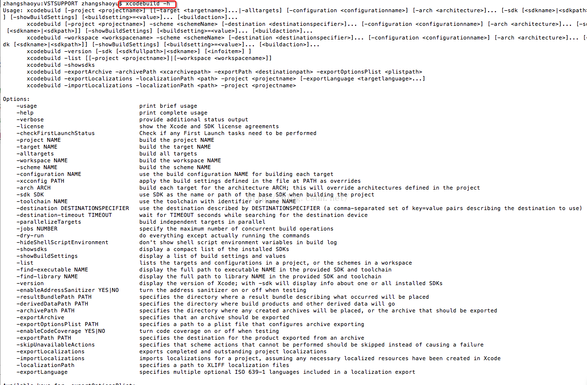 需要注意的是,在使用xcodebuild命令时,有些命令必须在项目目录下进行。如:xcodebuild -list