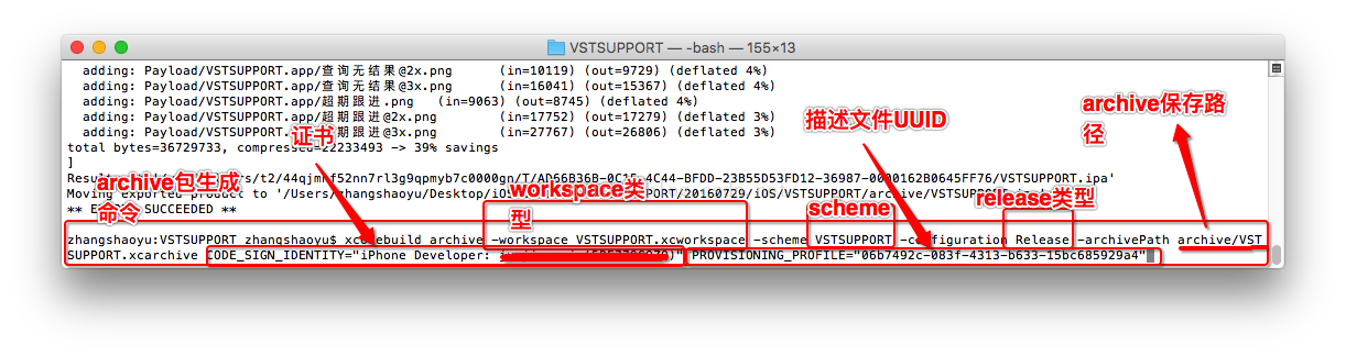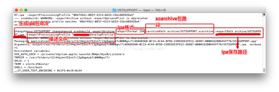 xcodebuild -exportArchive -exportFormat IPA -archivePath archive/zsyTest.xcarchive -exportPath archive/zsyTest.ipa -exportProvisioningProfile "zsyTestDevelopProfile"