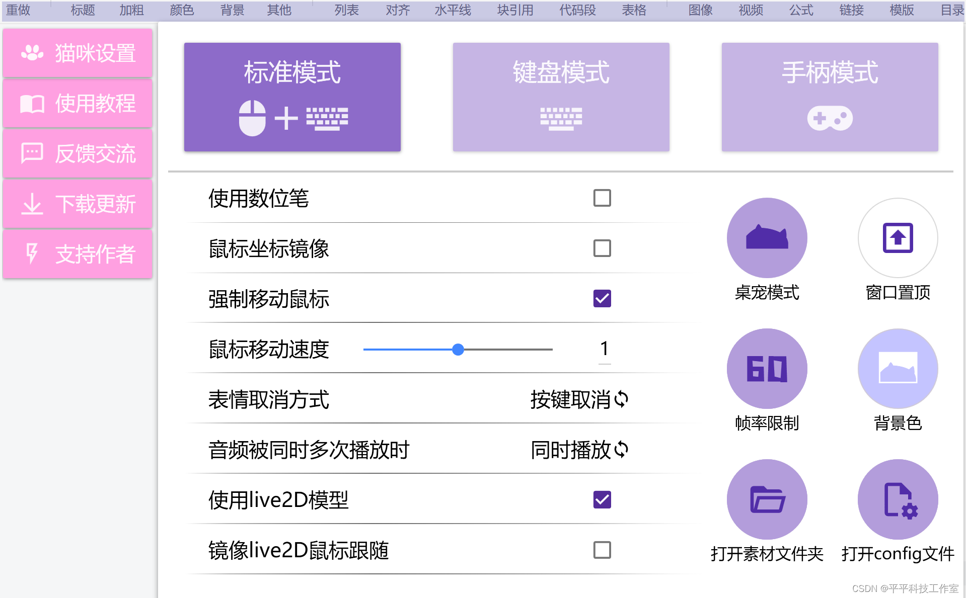 1、四种模式:键鼠,绘画,手柄还有纯键盘