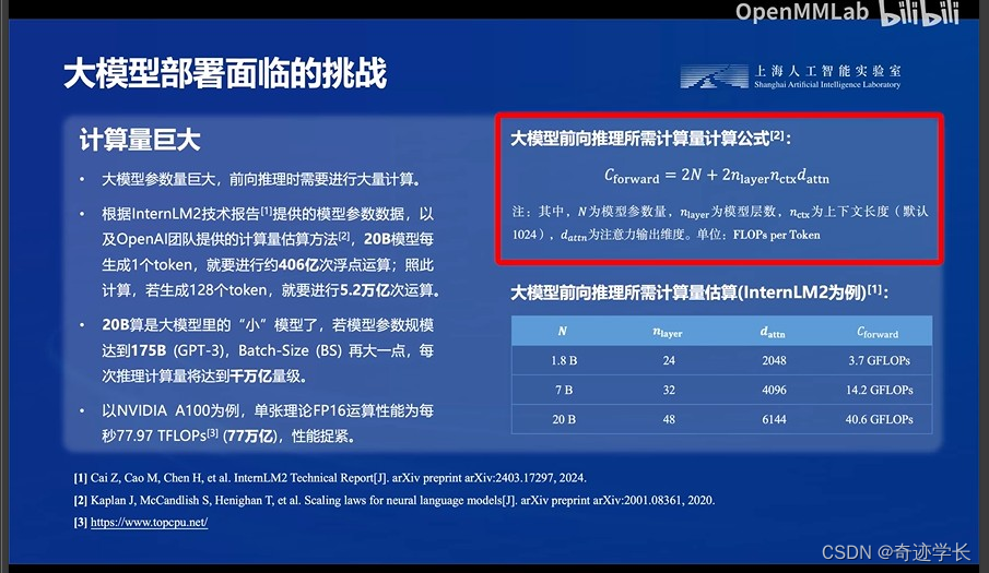 本文探讨了大模型部署面临的挑战,如计算需求、内存限制和访存瓶颈,介绍了模型剪枝、知识蒸馏和量化等方法。LMDeploy平台提供了高效推理、量化压缩和便捷服务解决方案,已支持11种模型部署,以应对这些挑战。