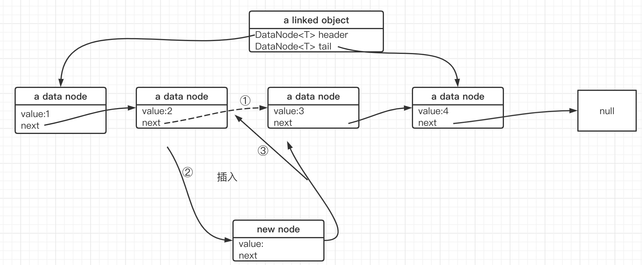 上面主要是定义基本的数据结构,接下来我们看一下在链表的中间插入新的数据。