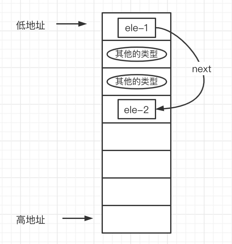物理存储非连续、逻辑通过指针实现顺序性,其示例图如下所示: