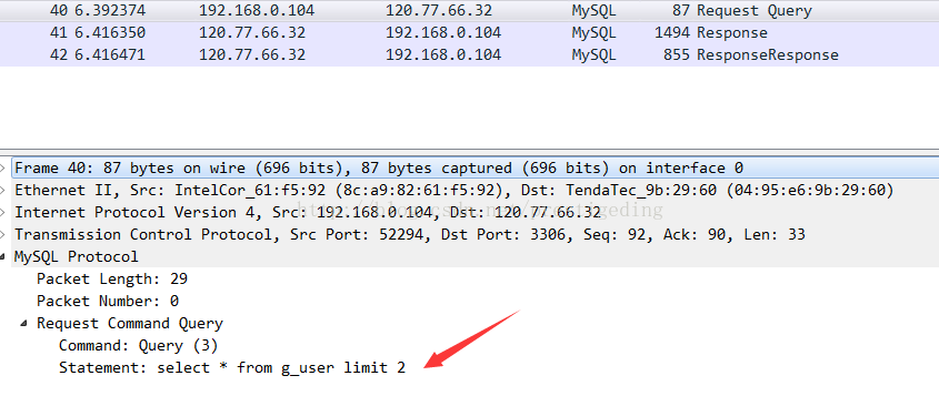 相关协议定义请参考:https://dev.mysql.com/doc/internals/en/com-query.html