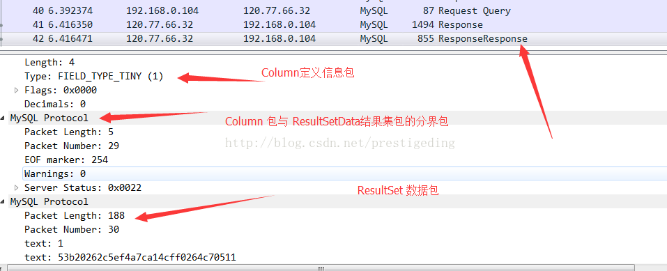 - 如果返回结果集,则下发包为Resultset,本文的重点,解析ResultSet报文。