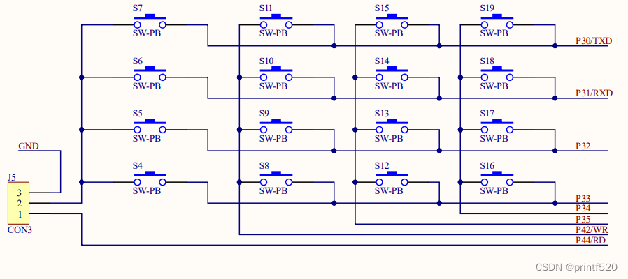 蓝桥杯单片机初始化函数(原理、代码详解) 在学习LED灯、数码管、蜂鸣器、继电器的时候,不知道大家有没有发现,控制这些外设的都是P0口,为什么这些IO口不会冲突呢?当我们要使用那个模块时,就打开控制这个模块的锁存器,这样单片机的IO口就不会冲突了。前面的很多章我们都有使用到初始化代码,在这里我们对初始化来进行一个详细的解释,首先我们要知道为什么要初始化。大家会不会很疑惑为什么要这样设计,是不是很麻烦,每次使用的时候还要打开控制的锁存器。其实这样设计是有很大好处的,因为单片机的IO口资源非常的有限,这样做大大节省了IO的资源。