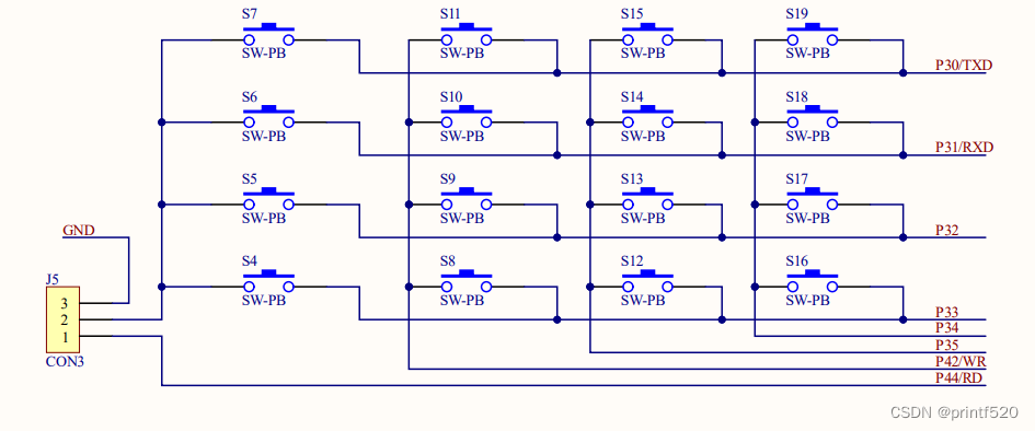 蓝桥杯单片机比赛独立按键模块(原理、代码详解) 在使用一个元器件时,了解它的原件特性也是必不可少的步骤,只用这样我们才可以更好的去使用它。独立按键的工作原理就是将按键的信号转换成电脑可以理解的信号,并且传输给处理器。独立按键的内部结构是一个弹性贴片,在按下松手时会有抖动,抖动的时间大概有20ms,如果不进行处理,很有可能松手的时候会出现抖动误判。内部结构图 按键抖动波形图。