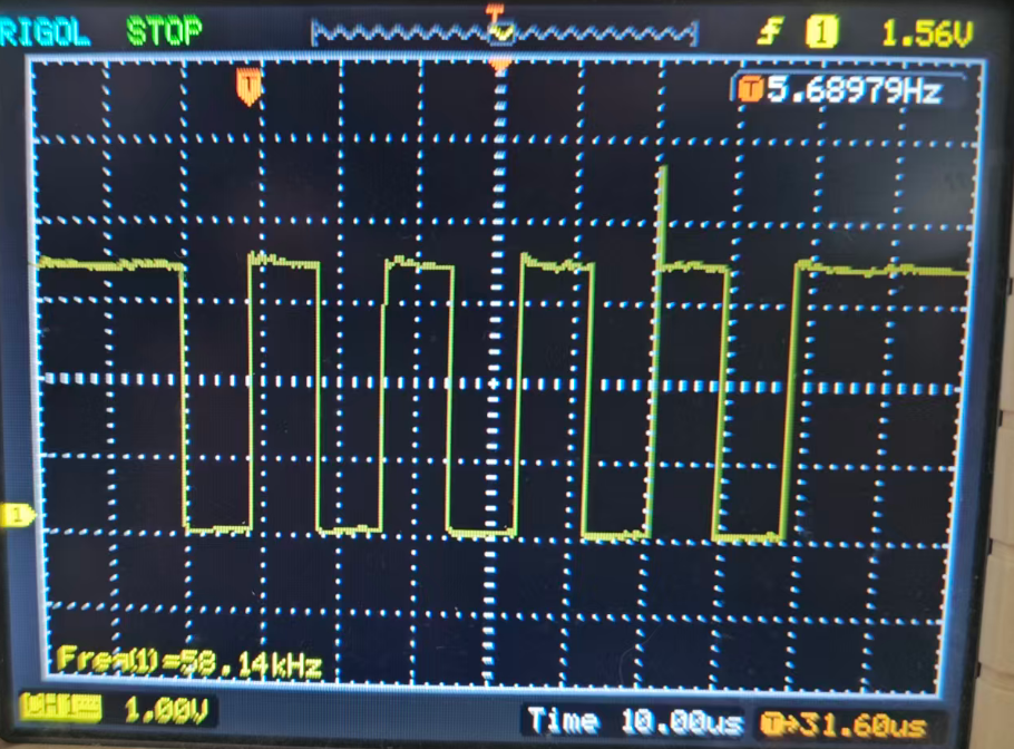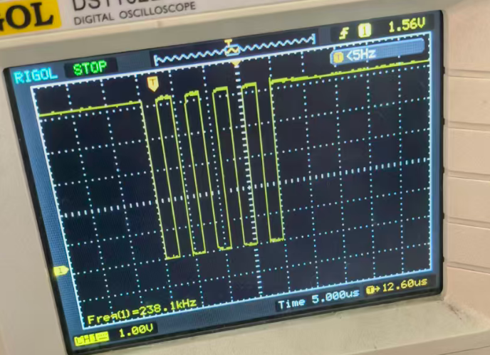 时基 5us,每个大格子5us,每个小格子1us,每bit占用大概2.2个us