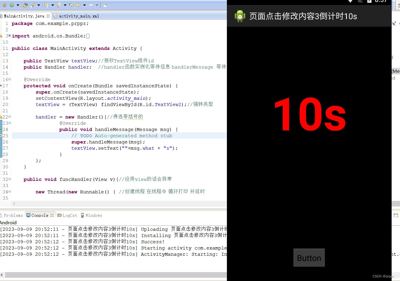 倒计时 Handler 、TextView、Message、 handler.sendMessage(msg);