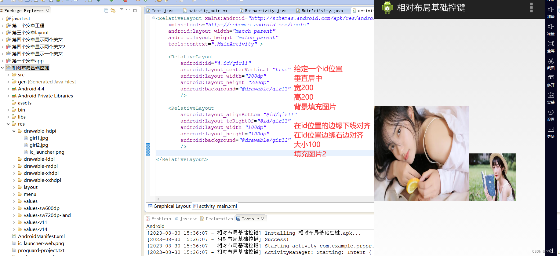 android:layout_below = "@id/girl" 在这个布局位置的下面